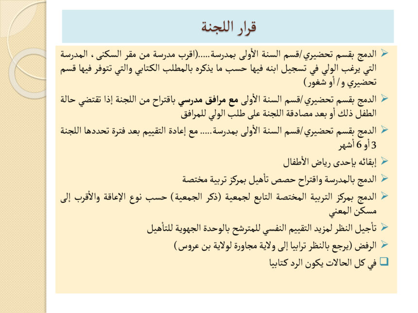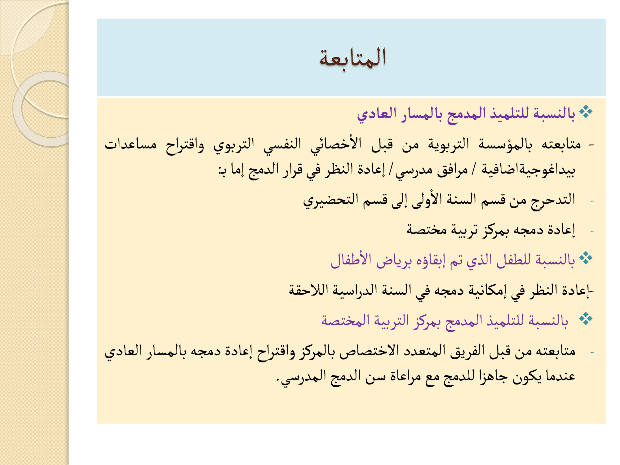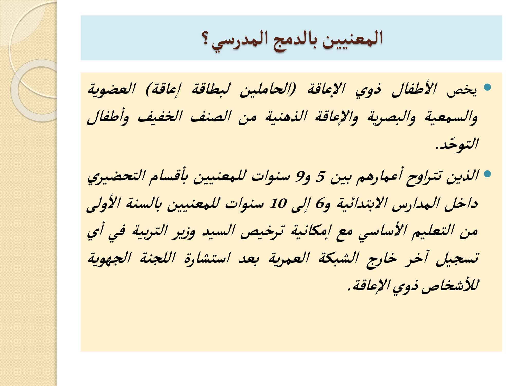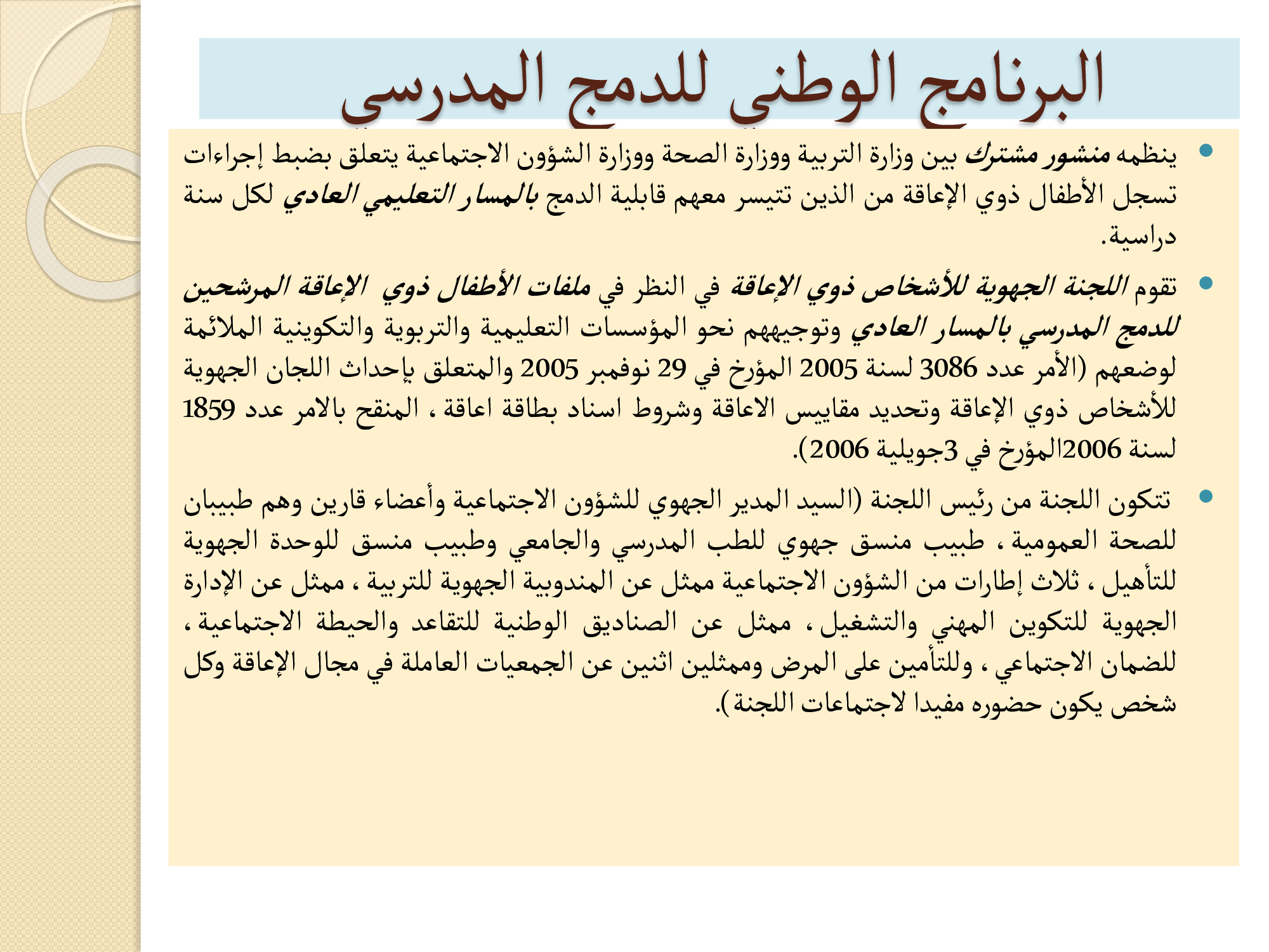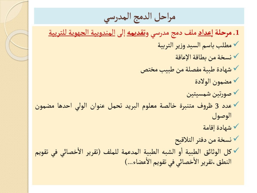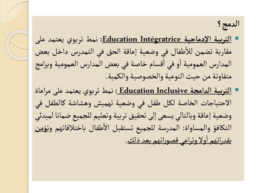 في هذا المستند تجدون معنى الدمج و شروطه و مراحله و به مختلف المراجع القانونية للدمج المدرسي